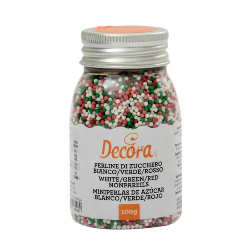 Da spargere direttamente su torte, cupcakes e biscotti. Ideali per il tema natalizio, ricorda il colore della neve, degli alberi di Natale e di Babbo Natale.