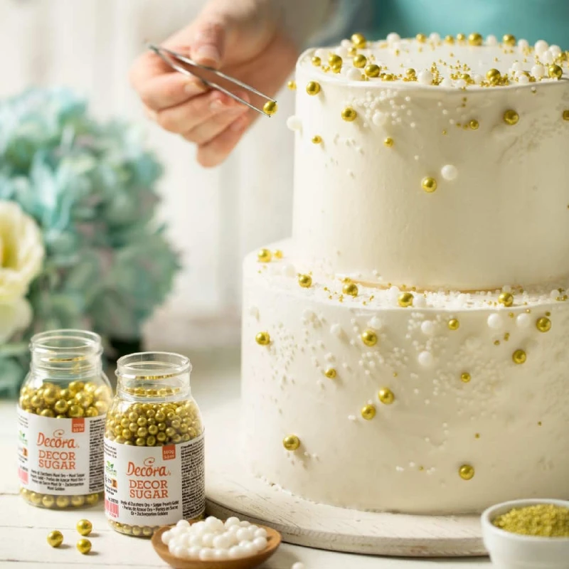 Perline di zucchero da spargere direttamente su torte, cupcakes e biscotti. Realizzate con coloranti di estrazione naturale, nel rispetto dell’alimentazione anche dei più piccini.