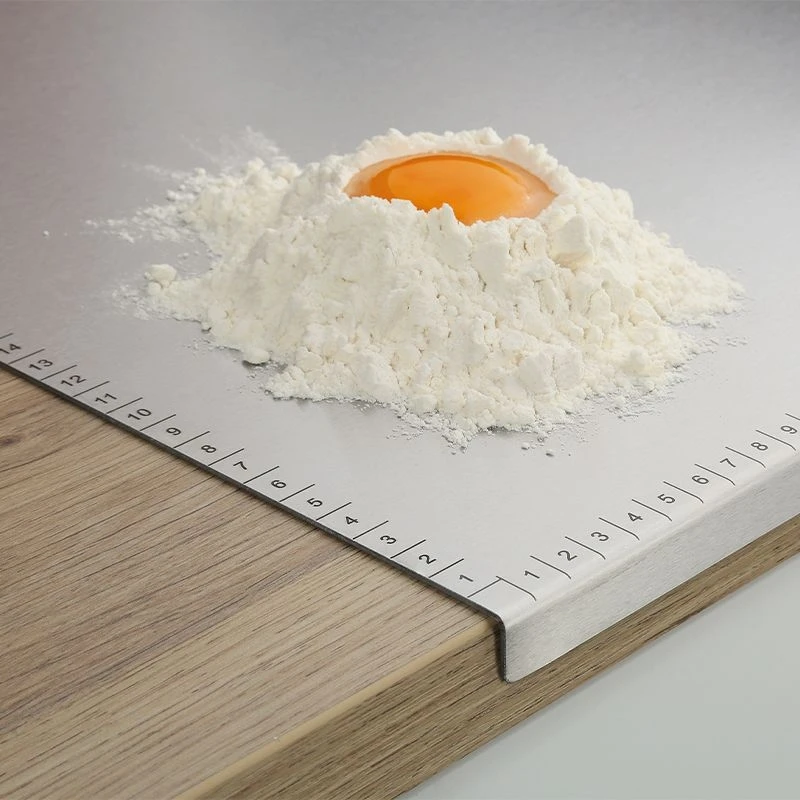 Spianatoia multifunzione con scala graduata in cm, realizzata in acciaio inox, è ideale per essere usata come piano d’appoggio, come spianatoia per impastare o come copertura del piano cottura.