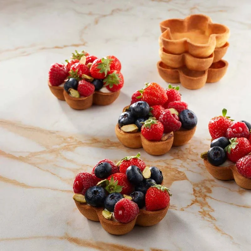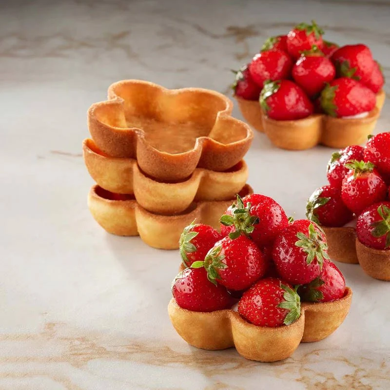 Crea tartellette perfette dal design elegante con la Piastra120 Fiore 5 Petali, progettata per l’utilizzo con la macchina professionale New Cookmatic di Pavoni. Con le sue 9 impronte da 30 ml ciascuna, questa piastra ti consente di realizzare basi dolci e salate a forma di fiore, ideali per creare dessert raffinati o finger food originali.