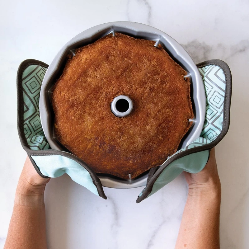 Le tasche per dita e pollice sul retro favoriscono una presa salda e sicura anche con stampi e padelle appena sfornati.