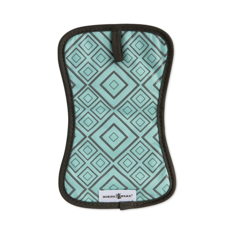 Questa elegante presina trapuntata in cotone a trama fitta, presenta dettagli geometrici in silicone sul lato anteriore per una manipolazione sicura delle pentole calde.