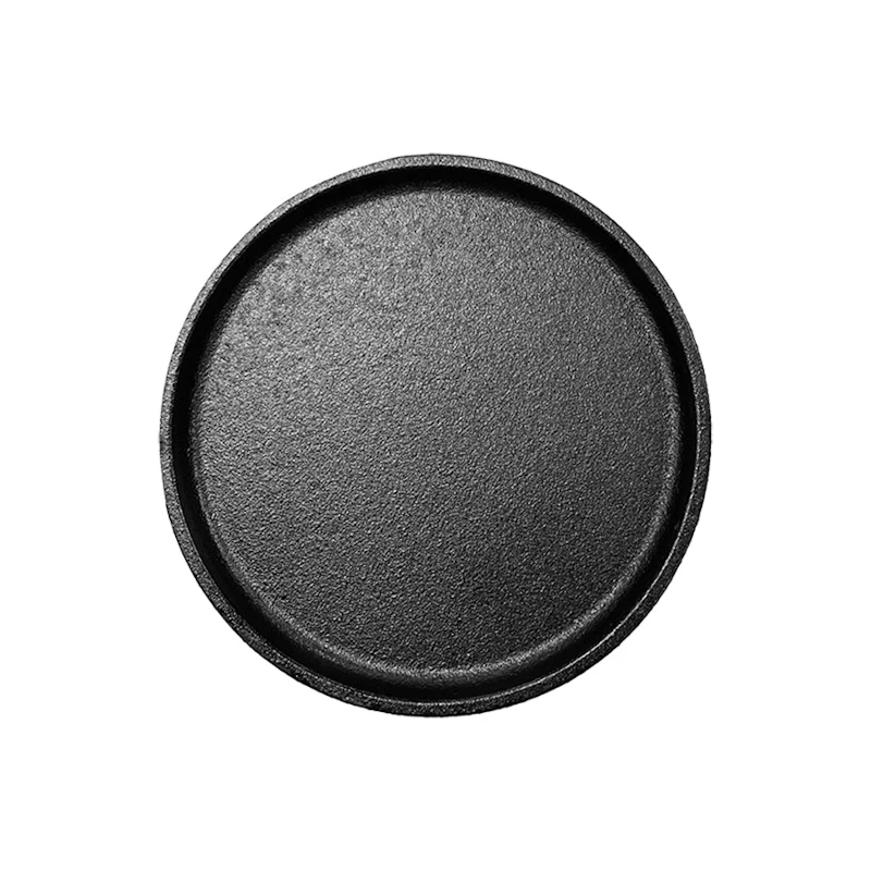 Pressa in ghisa pretrattata, robusta e resistente, di forma rotonda. La pressione consente di eliminare il grasso in eccesso delle carni, impedisce al bacon di arricciarsi e, quando preriscaldata, velocizza la cottura.