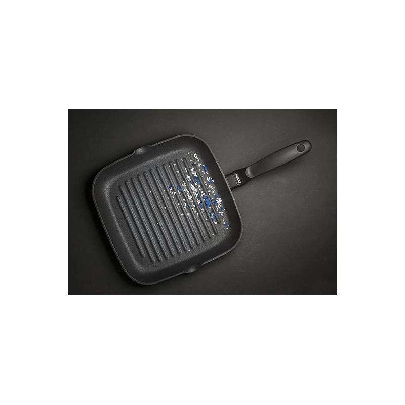La bistecchiera 26×26 cm della linea BLACKplus® di Risolì è progettata per garantire grigliate perfette, dentro e fuori casa. Costruita in alluminio pressofuso ad alto spessore, unisce leggerezza, indeformabilità e distribuzione omogenea del calore, consentendo cotture rapide e uniformi anche ad alte temperature.
