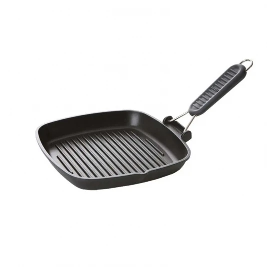 - Tipologia: Bistecchiera quadrata con manico pieghevole in silicone
