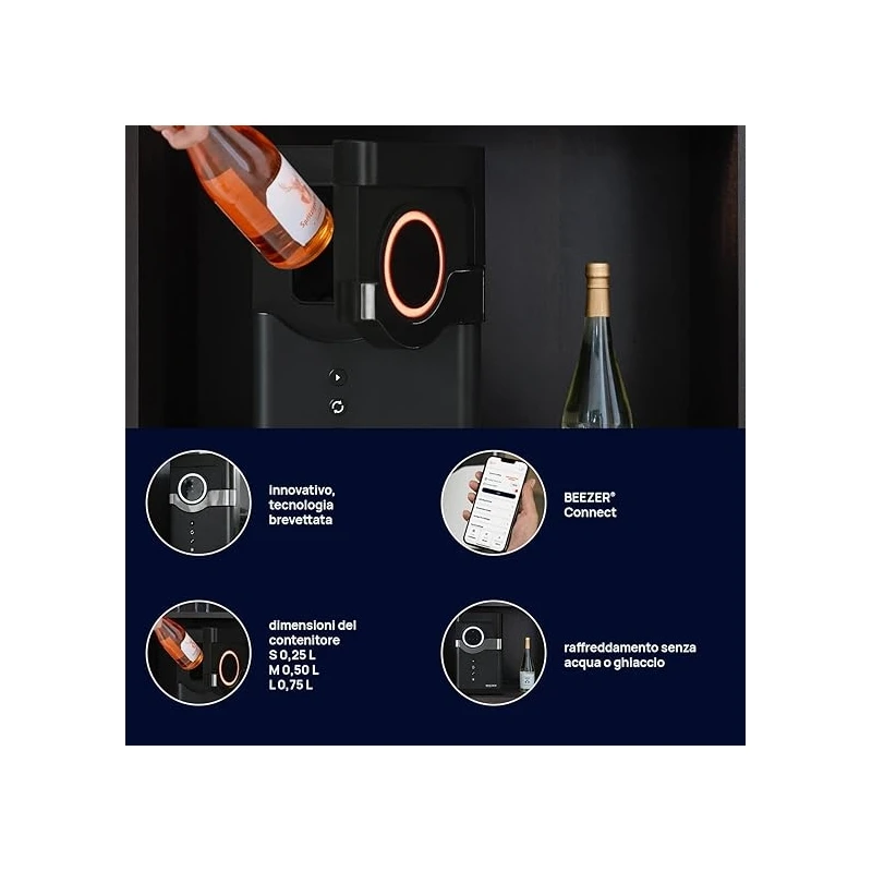 Perfetto per vino, birra, bibite e cocktail, il BEEZER® è la soluzione definitiva per chi desidera sempre la temperatura perfetta in pochi minuti, senza occupare spazio con frigoriferi ingombranti. BEEZER® è ideale per casa, ufficio, eventi e locali.
