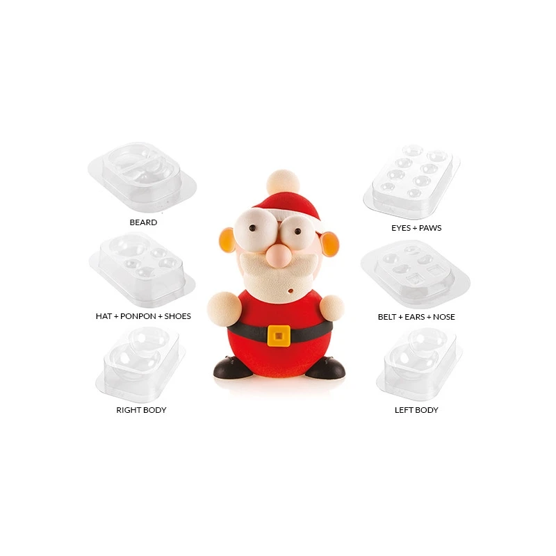 Ideato dai designer Silikomart in collaborazione con il Pastry Chef Raul Bernal, questo kit di 6 stampi in plastica termoformata, ti permette di realizzare un simpatico Babbo Natale in cioccolato da gustare nel periodo di Natale!