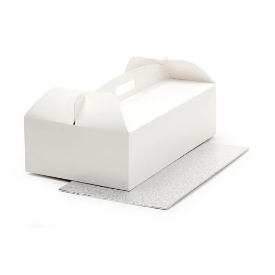 Questa scatola in cartone è facile da montare ed adatta al trasporto di torte e dolcetti. La pratica maniglia conferisce stabilità alla presa.