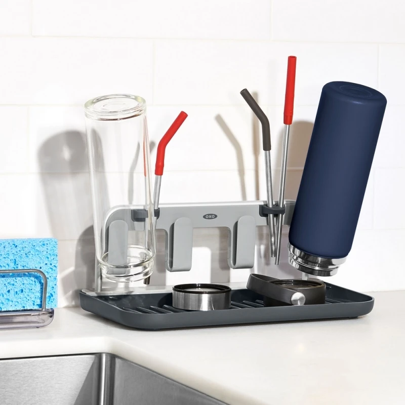 Utensile ideale per far scolare e asciugare bottiglie, borracce, tazze, biberon e cannucce.