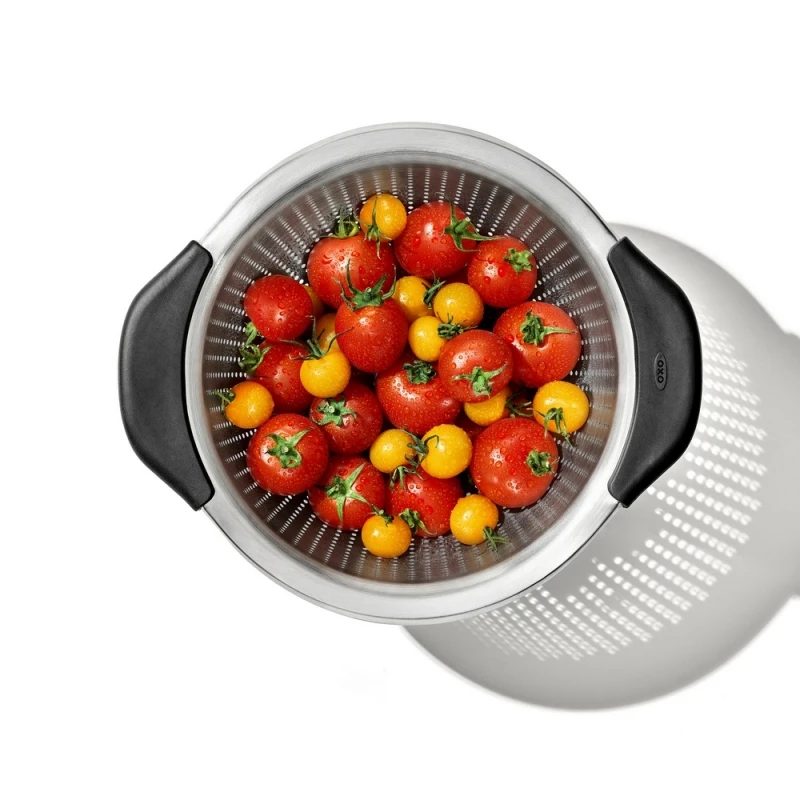 Che tu stia sciacquando le verdure o scolando la pasta, lo scolapasta in acciaio inossidabile OXO da 2,8 litri è davvero l’ideale.