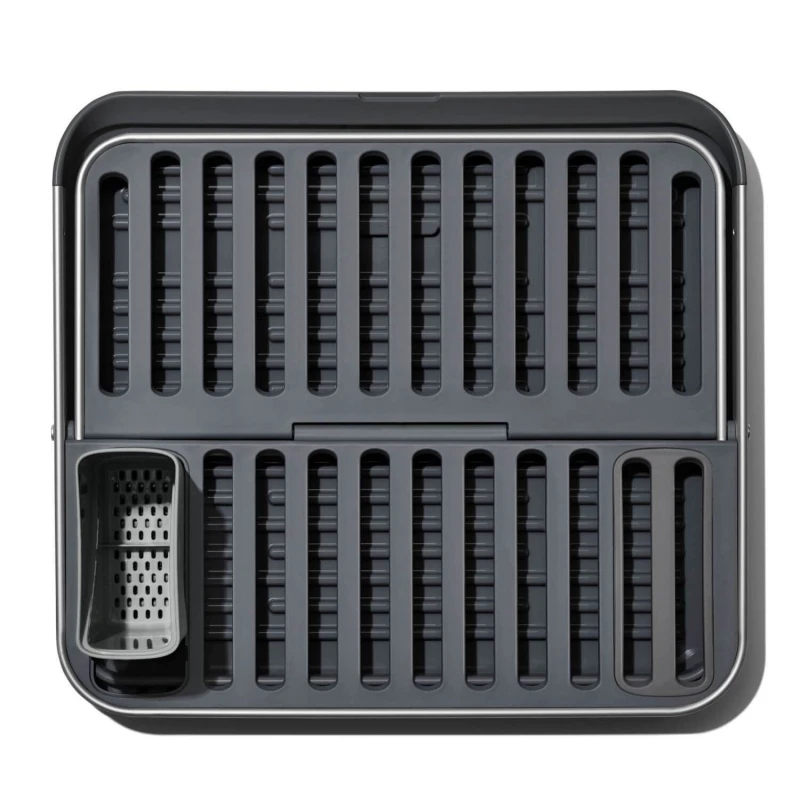 Scolapiatti collassabile con telaio in alluminio antiruggine caratterizzato da un design a due strati che contiene oggetti di tutte le dimensioni.