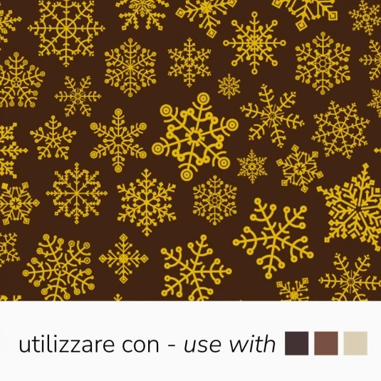 Fogli di acetato stampati, con soggetti natalizi di colore giallo oro, perfetti per realizzare decorazioni su praline e cioccolatini a tema Natalizio.
