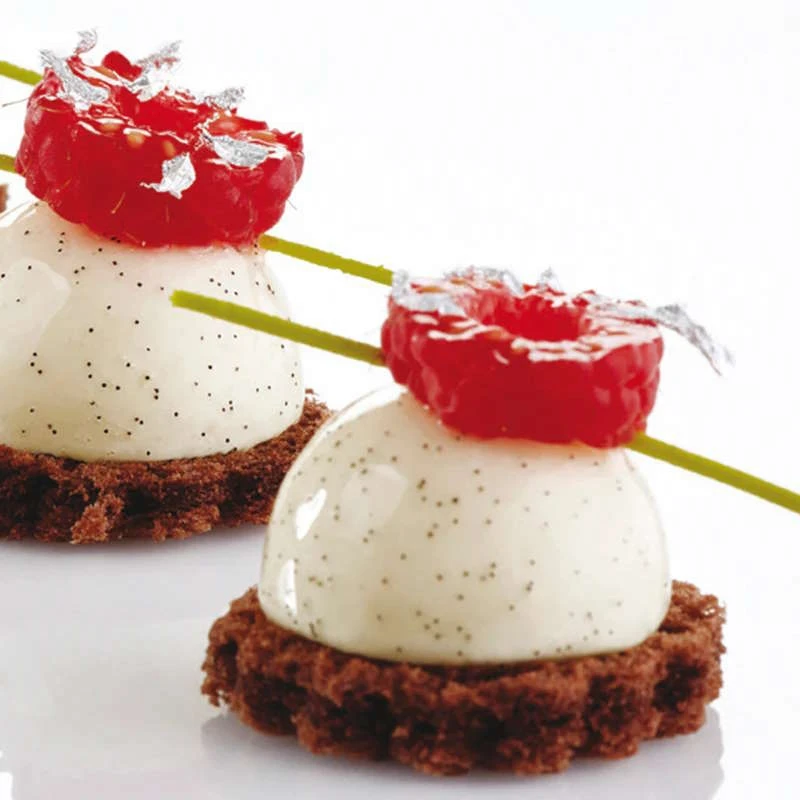Crea monoporzioni, decorazioni e componenti di dessert con la forma semisferica classica e senza tempo, ideale per una presentazione impeccabile.