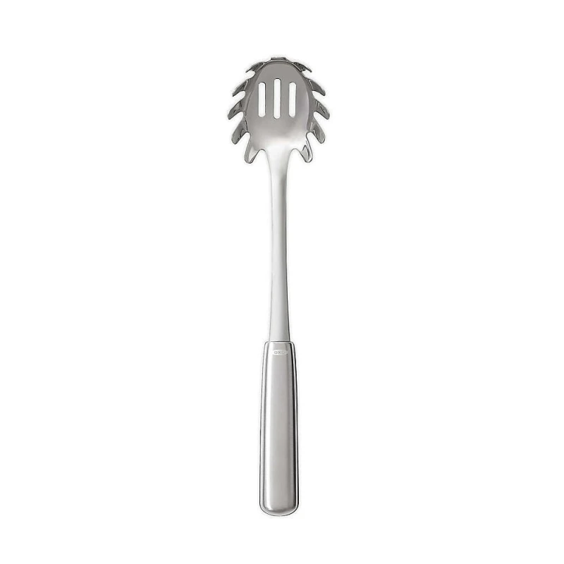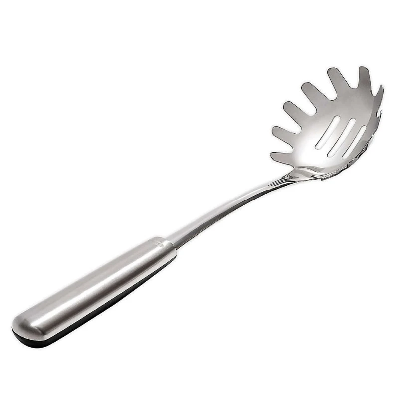 Il servispaghetti, parte della linea Steel di Oxo, ha un design elegante ed è ottimo per mescolare e servire zuppe, minestre e altre pietanze brodose in fase di preparazione e anche direttamente in tavola.