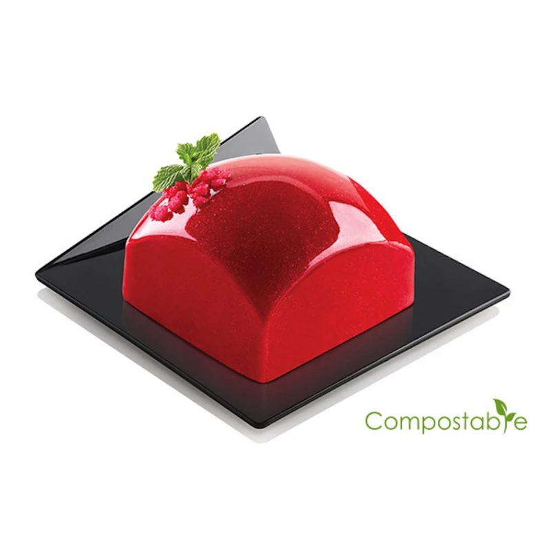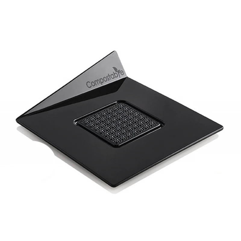 Grazie al colore nero, al design minimal e alle proprietà antigraffio, il piattino mette in risalto l’estetica del prodotto finito per un colpo d’occhio elegante e raffinato.