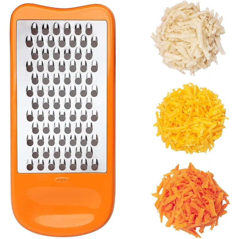• grattugia a grana grossa: perfetta per formaggi semi-molli, burro, mele, cavoli, patate, cipolle e altro;