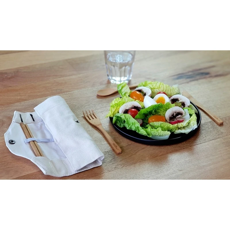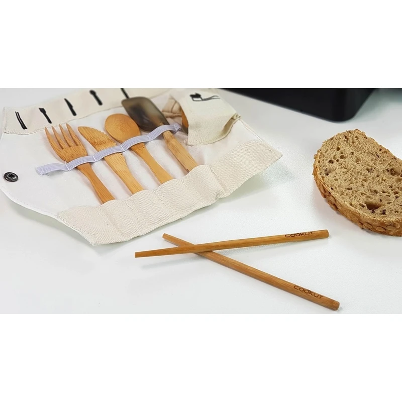 - set di posate in bambù (forchetta, coltello, cucchiaio e bacchette)