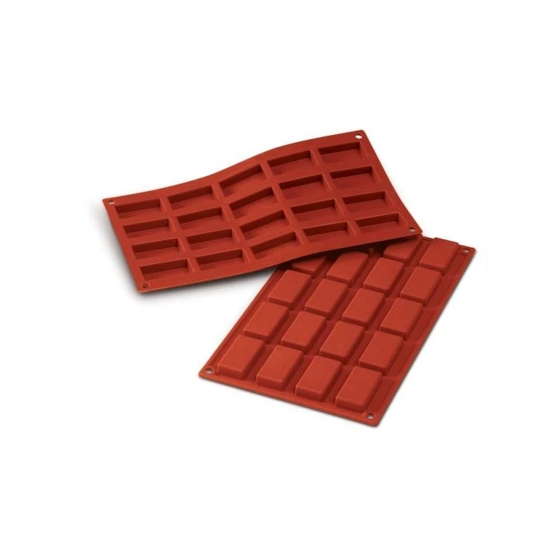 Lo Stampo SF025 Finanzieri di Silikomart fa parte della prestigiosa linea Classic, progettata per offrire massima versatilità e risultati impeccabili in ogni preparazione. Con 20 impronte in silicone platinico antiaderente, è ideale per realizzare finanzieri, mini cake, e preparazioni salate con forme perfette e dettagli definiti.