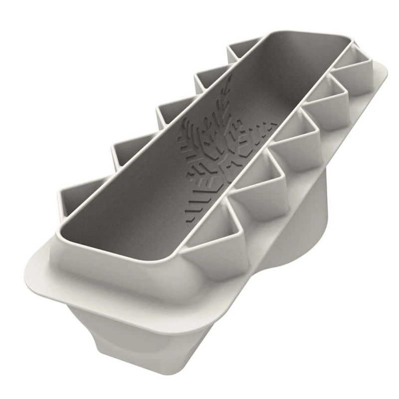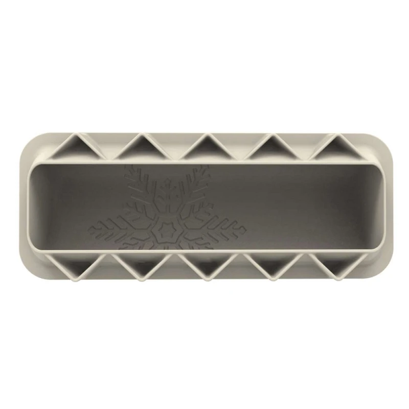 Lo stampo Snowfall Bûche ti permette di realizzare tronchetti dall’aspetto liscio, arricchiti da una raffinata decorazione a motivo di fiocco di neve che impreziosirà ogni tavola festiva.