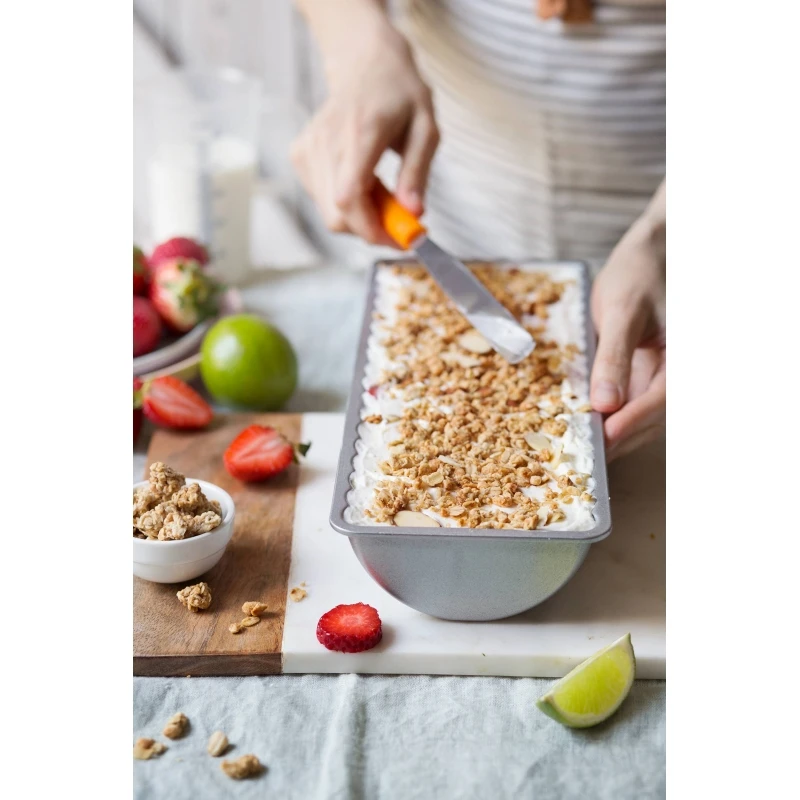 Una spatola versatile e sempre utile: manico ergonomico della lunghezza ideale per spostare torte e spalmare creme e cioccolato lungo i bordi.