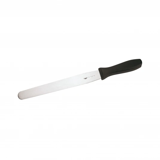 Spatola semiflessibile in acciaio inox di alta qualità. Ideale per l’uso in pasticceria: per stendere creme e glasse su torte o cupcakes, per il cake design, per distribuire l’impasto di frittelle e crêpes, per spalmare con efficacia burro e marmellata sulle fette di pane.