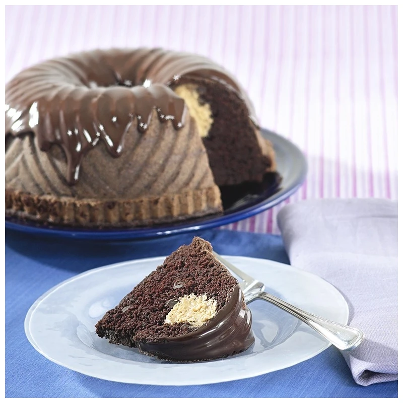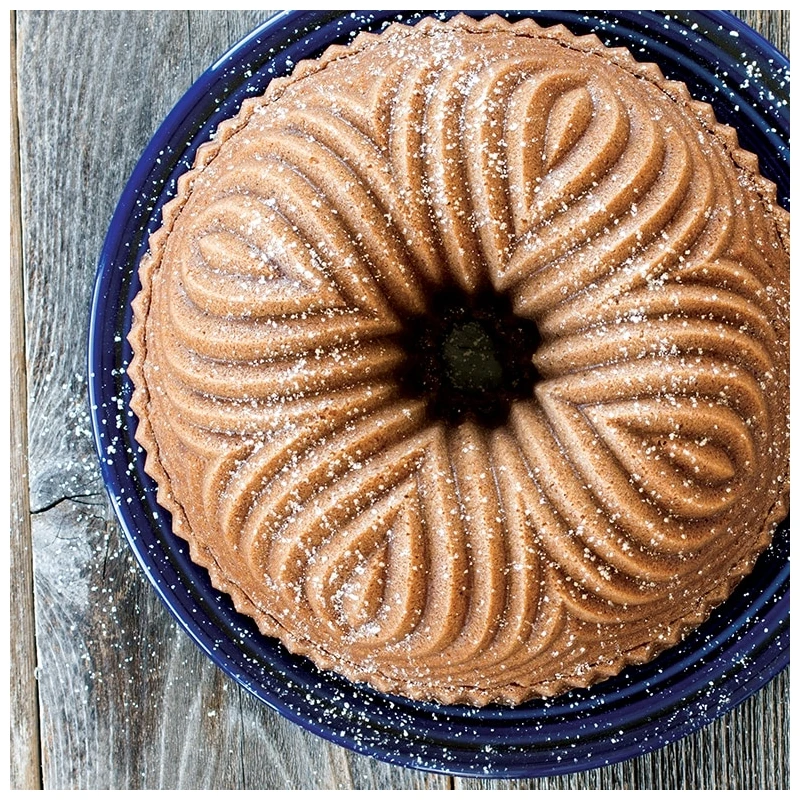 Motivi geometrici nitidi e puliti decorano lo stampo Bavaria Bundt Pan creando un torta dalla consistenza morbida e dal sapore deciso. La lavorazione particolare del decoro garantisce la riuscita di un dolce che non ha bisogno di ulteriori decorazioni, se non una colata di cioccolato per un tocco di golosità in più.