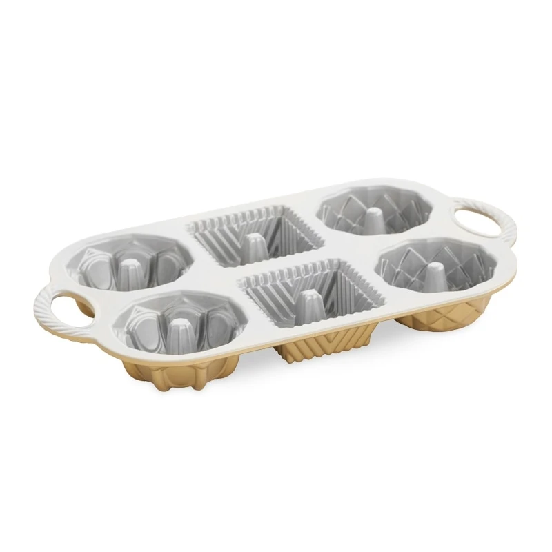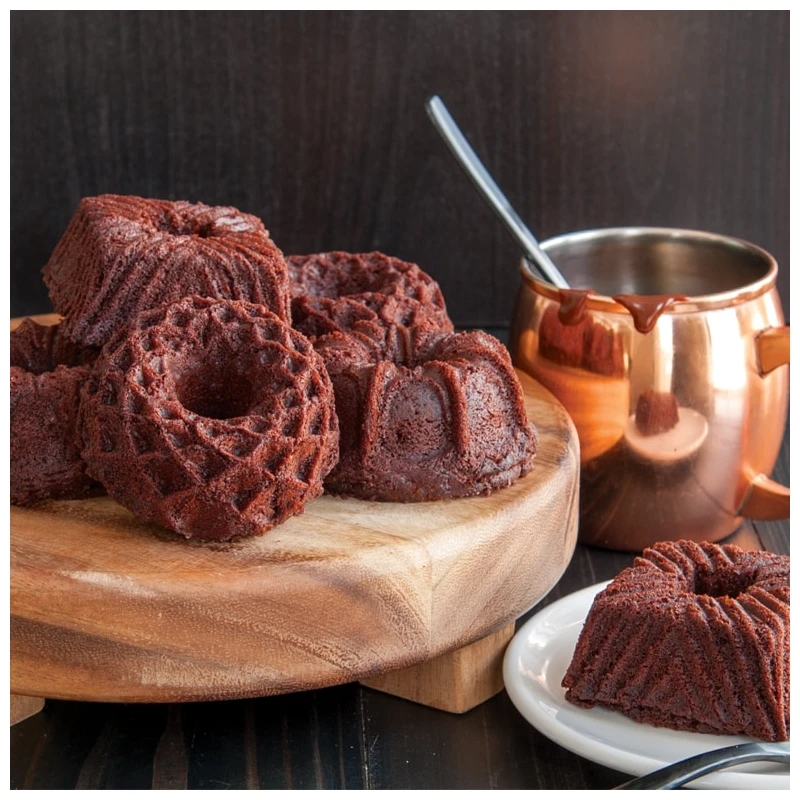 Sei piccoli stampi che riproducono le bellissime forme della Squared Pan, della Jubilee Bundt e della Vaulted Cathedral Bundt.