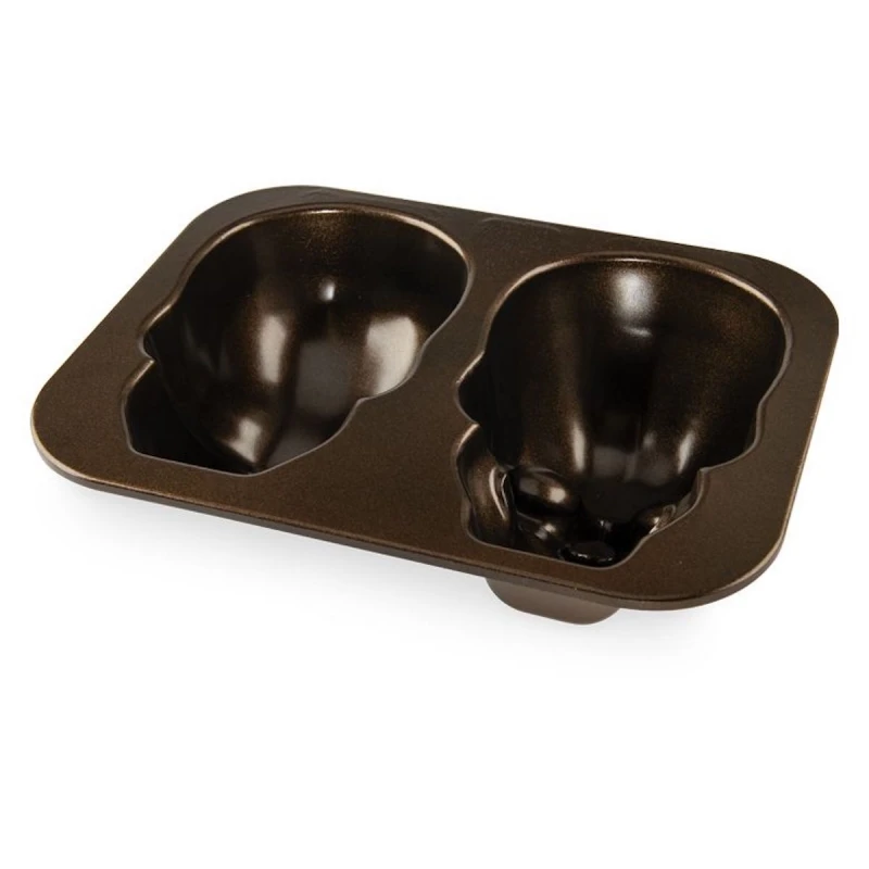 Cha paura con questa spettrale ghignante tortiera a forma di teschio! Cuocere le due metà nello stampo e poi unirle con la glassa per creare uno stupendo capolavoro 3D! Basta aggiungere qualche decorazione colorata e divertente per risultati davvero spettrali e strabilianti!