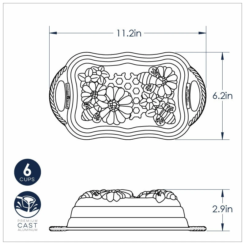 Lo stampo è realizzato in alluminio pressofuso con uno speciale rivestimento antiaderente premium ed è dotato di maniglie laterali che rendono semplice infornare e sformare, nonché utile per capovolgere i dolcetti sul piatto da portata.