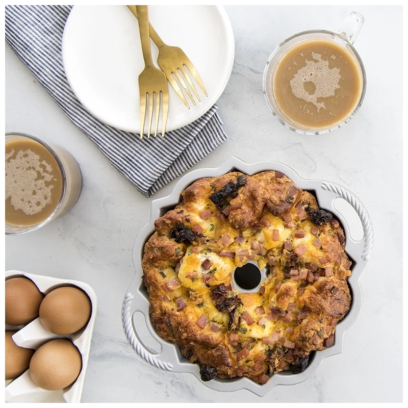 Stampo in versione dimezzata rispetto all’originale, che celebra la versione americana di una torta al caffè tedesca, da sempre sinonimo di eleganza e qualità.