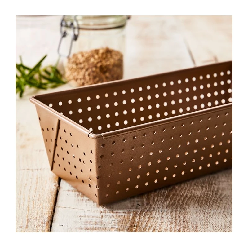 Realizza deliziose pagnotte di pane con questo nuovissimo stampo! Microforato e antiaderente consente al calore di circolare liberamente durante il processo di cottura per realizzare preparazioni morbide all’interno, ma con una superficie croccante tutt’intorno e una doratura perfetta dai bordi fino alla base.