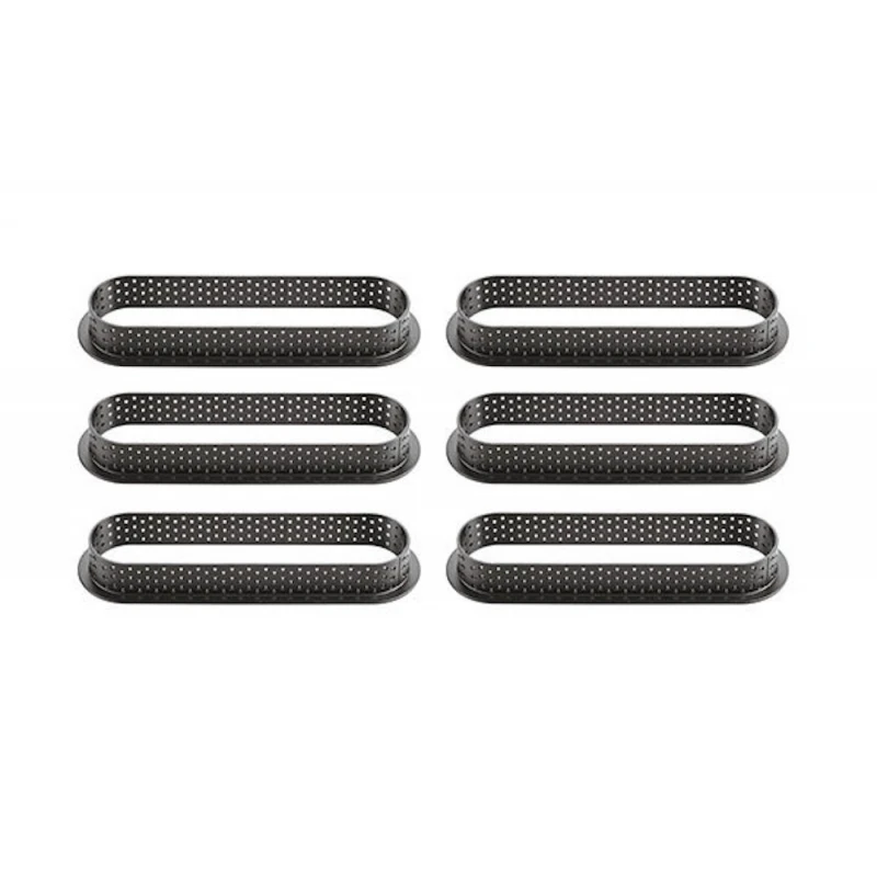 Set di 6 anelli, di forma ovale, delle misure di 14,6 x 3,5 cm ed altezza 2 cm, realizzati in materiale composito termoplastico, antiurto, antiaderente e inossidabile.