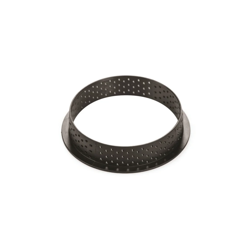 Set di 4 anelli microforati, di forma rotonda, delle misure di Ø 10 cm ed altezza 2 cm, realizzati in materiale composito termoplastico, antiurto, antiaderente e inossidabile.