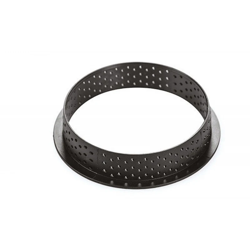Set di 8 anelli microforati, di forma rotonda, del diametro 7 cm ed altezza 2 cm, realizzati in materiale composito termoplastico, antiurto, antiaderente e inossidabile.