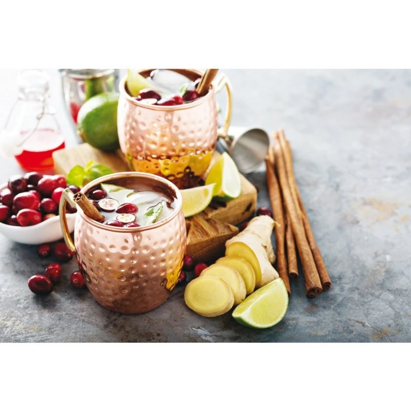 Tazza martellata con manico, in acciaio inox, color rame, caratteristica per servire e degustare il famoso drink Moscow Mule.