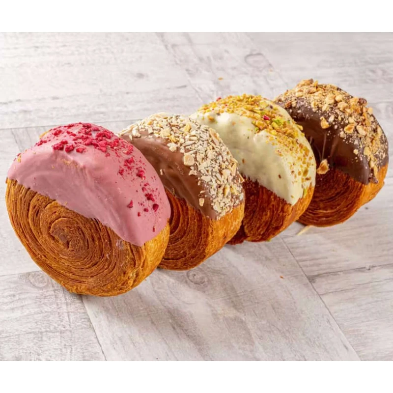 Ma è ideale anche per preparare sfoglie ripiene, croissant sagomati, New York rolls e Galette des Rois, semplicemente inserendo anelli microforati di diversi spessori e forme all’interno della teglia, grazie ai distanziali e ganasce inclusi nella confezione.