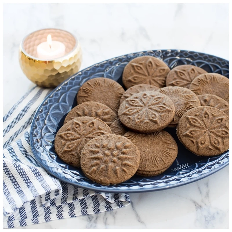 1. Applicare un leggero strato di olio sul timbro con un pennello da cucina o usare lo spray antiaderente. Riapplicare solo se l’impasto dei biscotti comincia ad attaccarsi al timbro.