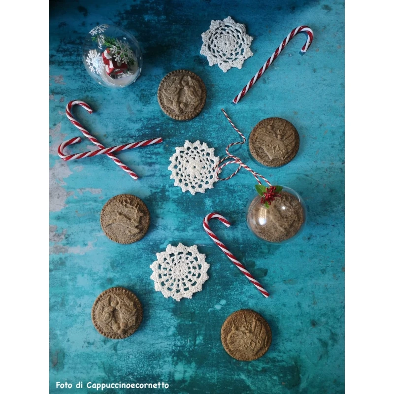 1. Applicare un leggero strato di olio sul timbro con un pennello da cucina o usare lo spray antiaderente. Riapplicare solo se l’impasto dei biscotti comincia ad attaccarsi al timbro.
