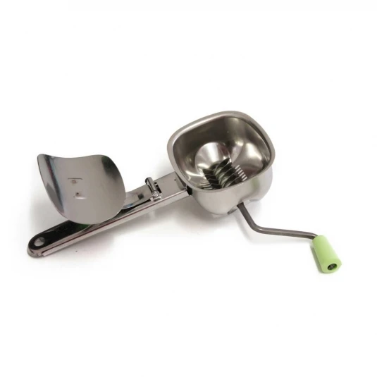 Basta inserire la verdura nell’apposita cavità, chiedere il coperchio e attraverso la manovella azionare le lame.