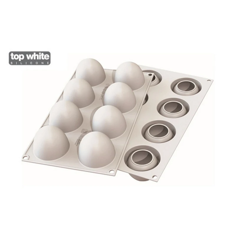 Ogni cavità è dotata di una speciale e innovativa bordatura, studiata per conferire alle preparazioni una particolare forma arrotondata alla base e che, al contempo, agevola la fase di smodellamento.