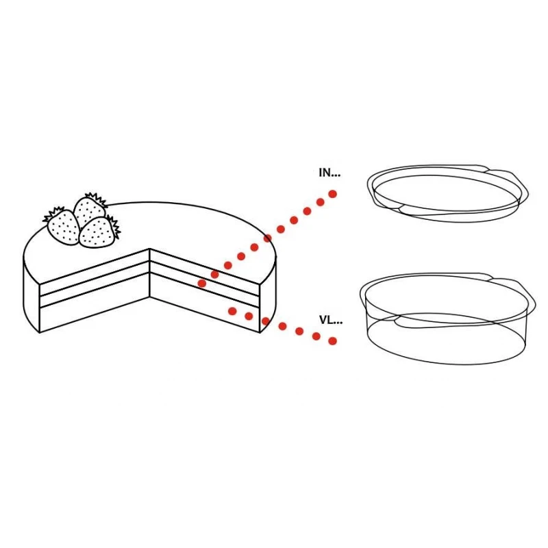 Confezione di stampi monouso Voilà per la creazione di inserti in torte con raggio stondato. I bordi arrotondati permettono una perfetta glassatura evitando l’antiestetico taglio della glassa.