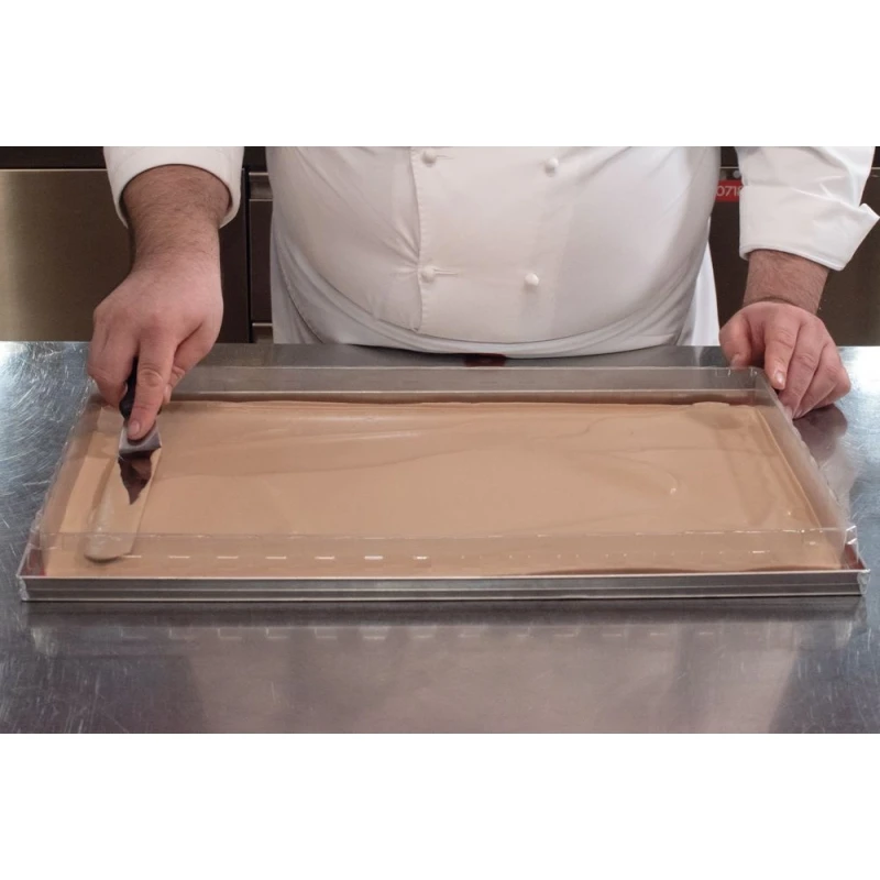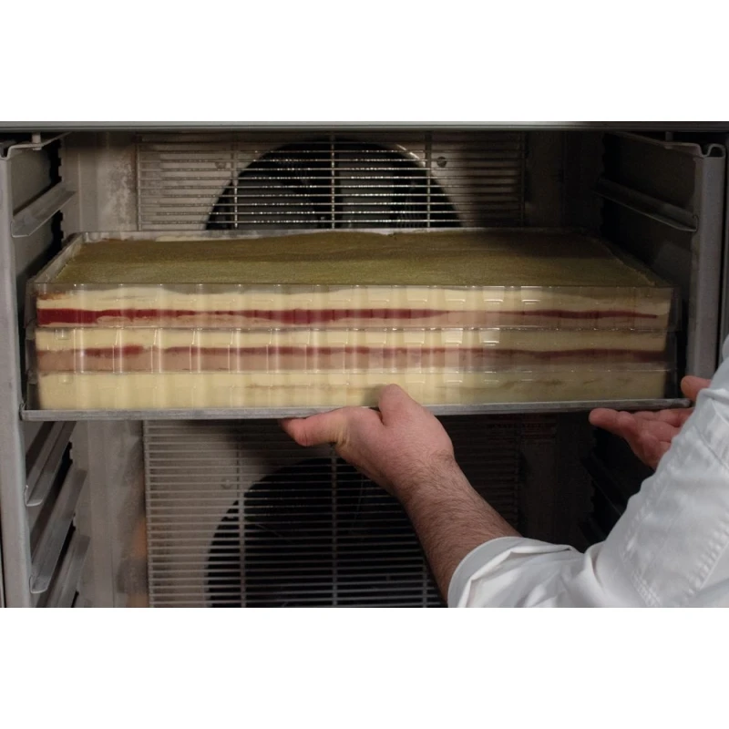 Confezione di stampi monouso Voilà per la creazione di torte quadrate. I bordi arrotondati permettono una perfetta glassatura evitando l’antiestetico taglio della glassa.