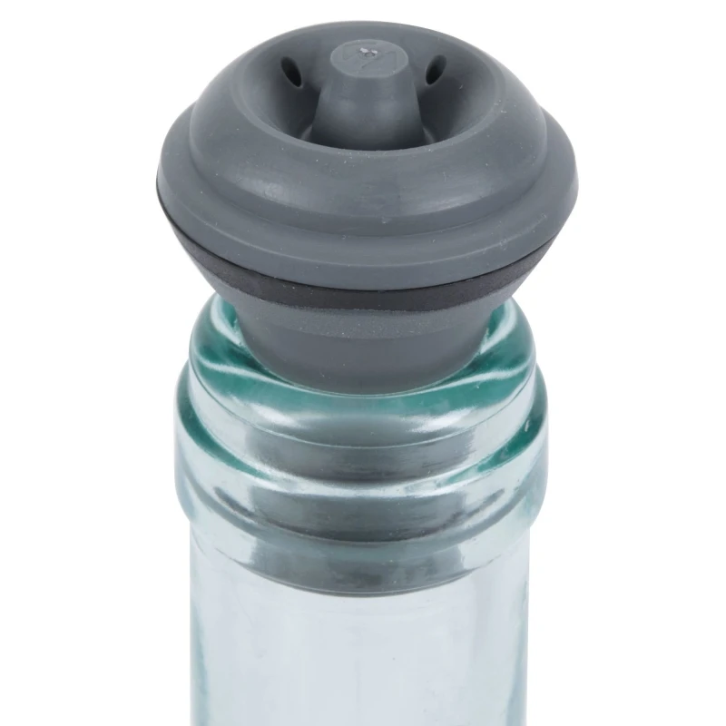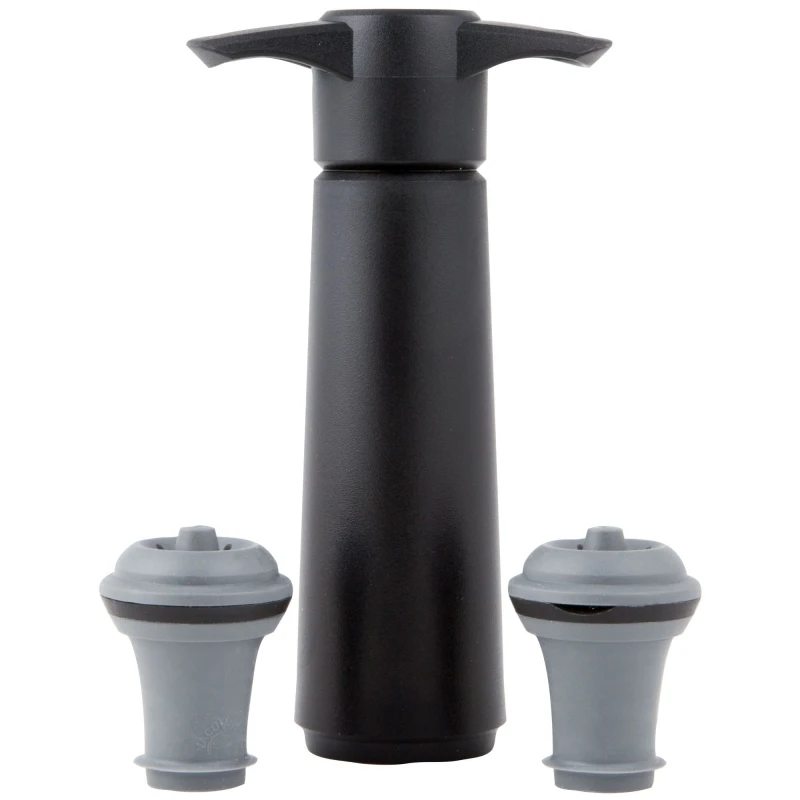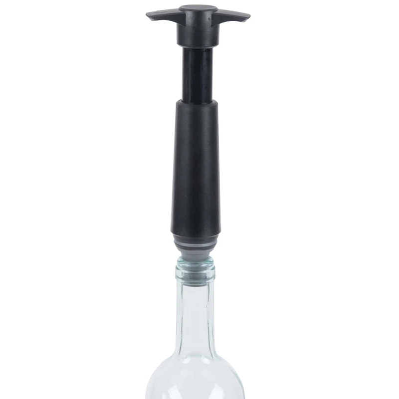 Speciale set di pompa aspira aria e 2 tappi universali in gomma riutilizzabili, adatti alla conservazione di una bottiglia di vino aperta per prevenirne l’ossidazione. La pompa permette di estrarre l’ossigeno dalla bottiglia precedentemente aperta e il tappo la chiude ermeticamente, creando il sottovuoto.