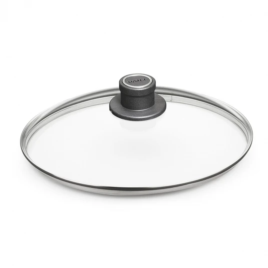 Coperchio rotondo in vetro temperato trasparente, dotato di uno sfiato permanente per il vapore e di un bordo in acciaio antiurto. Progettato per adattarsi perfettamente a tutte le pentole e padelle delle linee di Woll Diamond Lite e TiTAN Best.