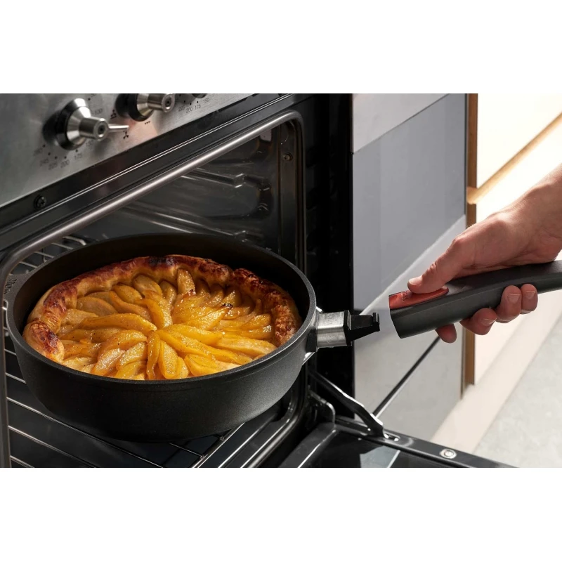 Con il manico staccabile e removibile, godi di un ulteriore livello di praticità, adattando facilmente le pentole e le padelle al lavello, alla lavastoviglie e alla credenza, consentendo di inserire i prodotti della linea in forno (fino a 250 gradi).