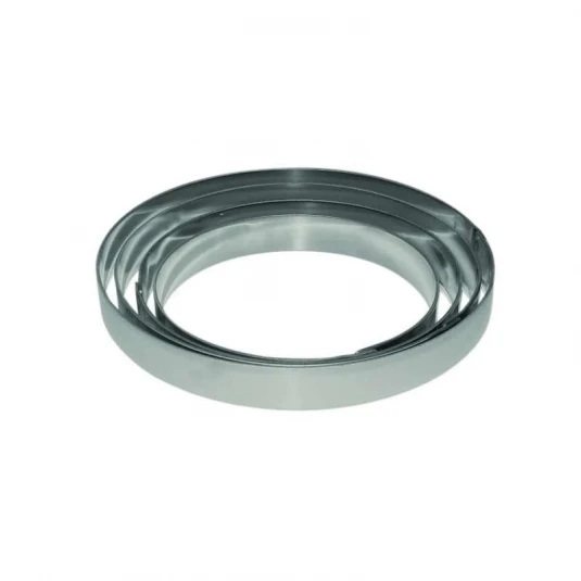 La forma e la superficie liscia di questa fascia in acciaio inox garantiscono risultati impeccabili, ideali per coppare e realizzare dolci con precisione.