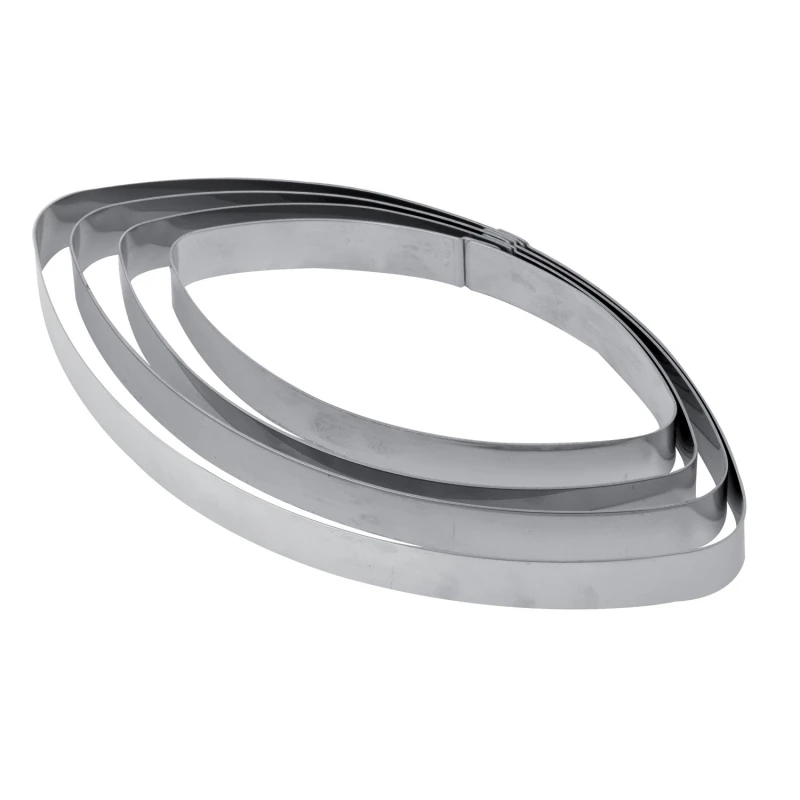 La forma e la superficie liscia di questa fascia in acciaio inox garantiscono risultati impeccabili, ideali per coppare e realizzare dolci con precisione.
