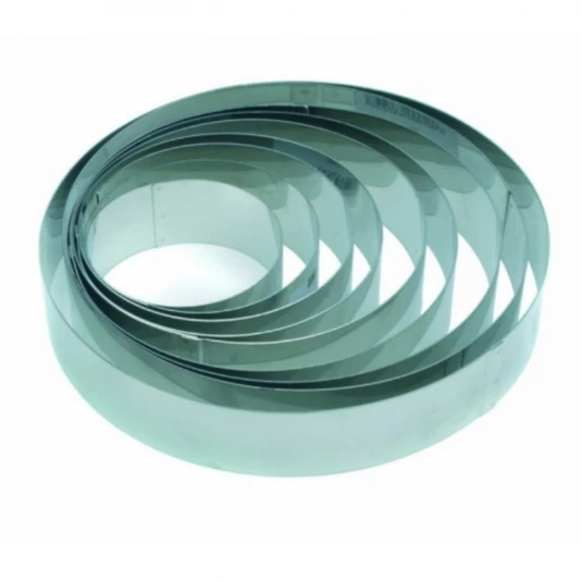 La forma e la superficie liscia di questa fascia in acciaio inox garantiscono risultati impeccabili, ideali per coppare e realizzare dolci con precisione.