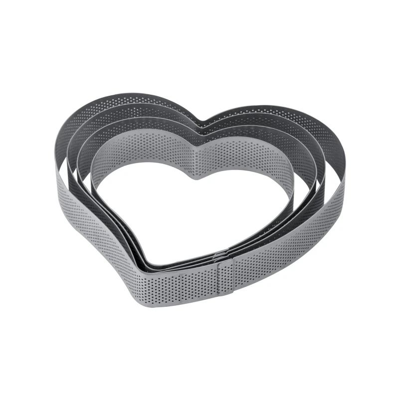 Fascia microforata in acciaio inox, a forma di cuore, nata dalla collaborazione di Pavoni con il Pastry Chef Gianluca Fusto.