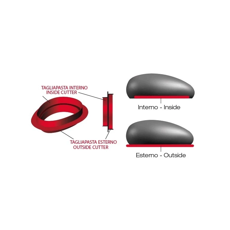 In dotazione, un funzionale tagliapasta doppio uso, per realizzare originali inserti e/o basi d’appoggio che si adattano perfettamente alla forma dello stampo.